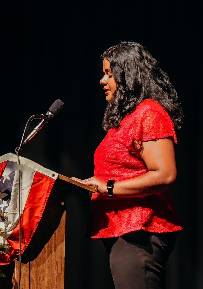 FREEDOM: Sarah Dennison of Minneapolis, Minnesota was the winner. Sarah pointed out that freedom requires courage but that for the future of humanity we must put freedom first.